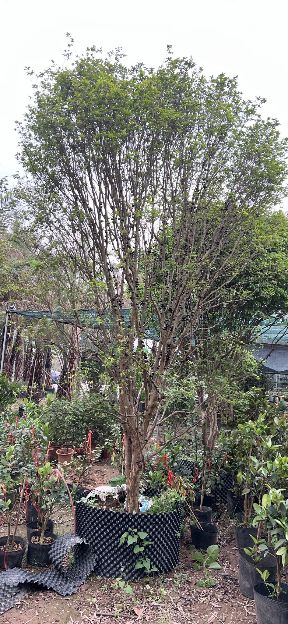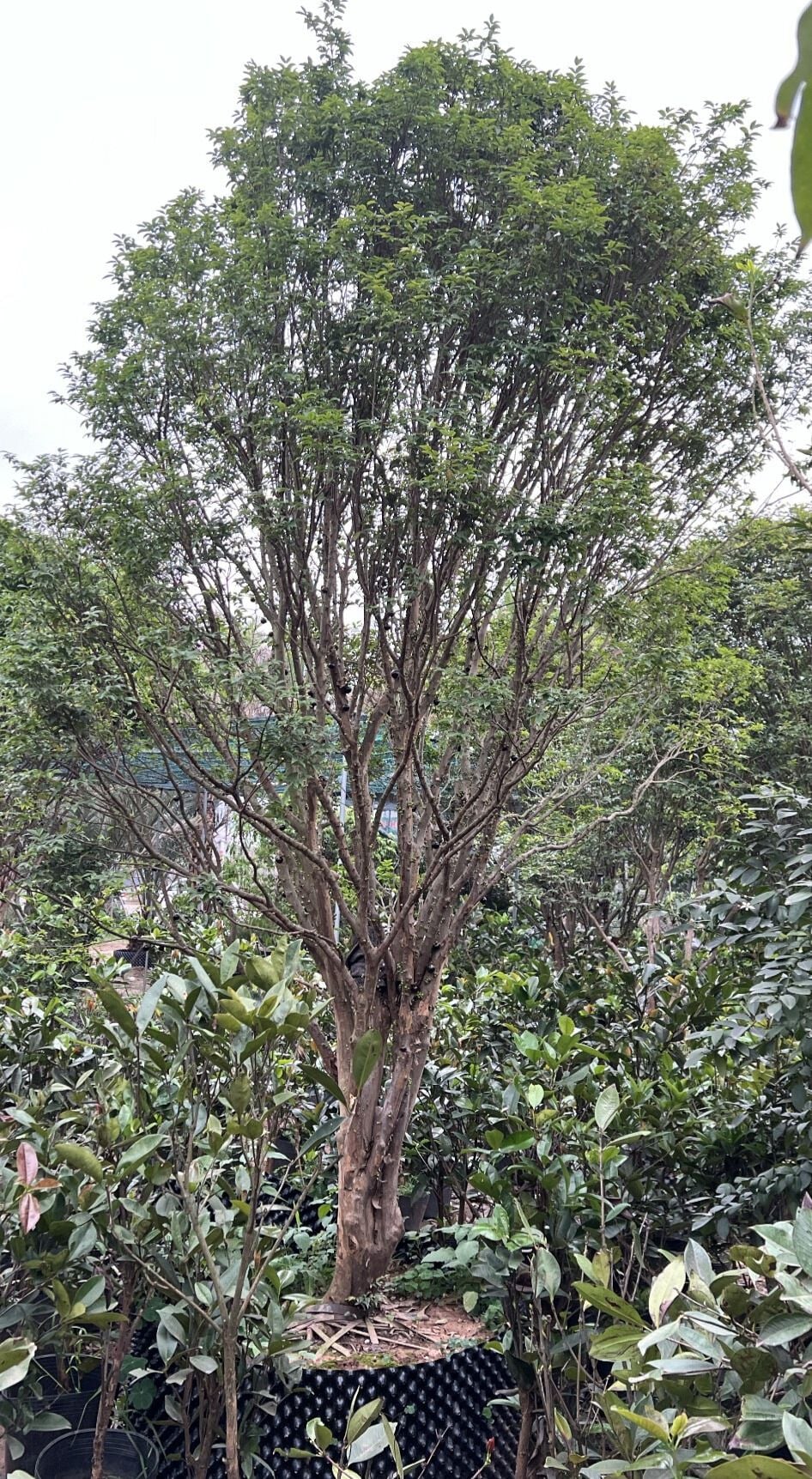 Loài cây này có thân gỗ giống cây ổi, sai trái và quả mọc quanh thân như cây sung Việt Nam. Trái của cây tương tự quả nho nhưng lớp vỏ ngoài dày, sáng bóng, khi chín có màu đen hoặc tím sẫm, thịt quả màu trắng và có 4 hạt.